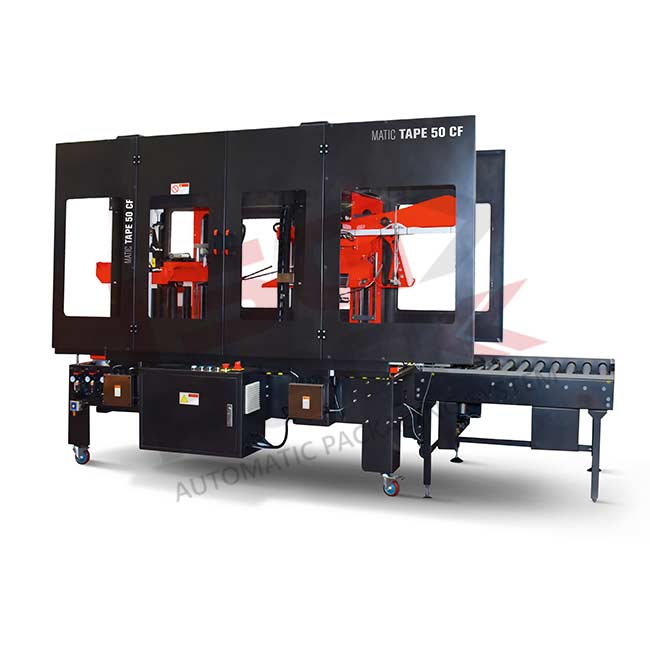 Automatyczna zaklejarka kartonów MATIC TAPE 50CF jest to kompletne rozwiązanie do zaklejania pudeł kartonowych klapowych różnych rozmiarów. Urządzenie przeznaczone do integracji w linię pakującą.