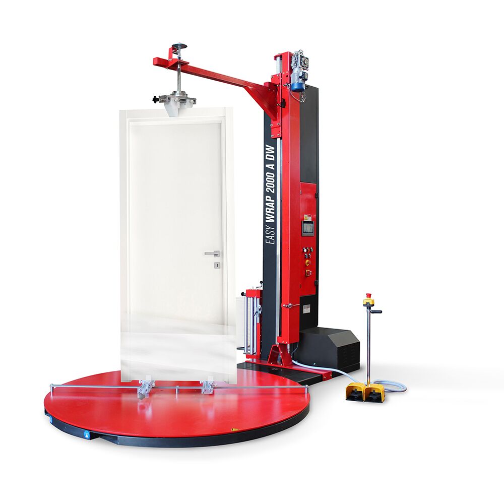 Easy Wrap 2000 A DW jest idealna do zabezpieczania drzwi, okien, kabin prysznicowych, mebli itp. w pionie poprzez owijanie folią stretch i jednocześnie pianką PE lub folią bąbelkową. Wyposażona jest w docisk górny z uchwytem oraz specjalne prowadnice na talerzu obrotowym. Model ten posiada cyfrowy panel sterowania poprzez, który możemy regulować wszystkie parametry urządzenia.