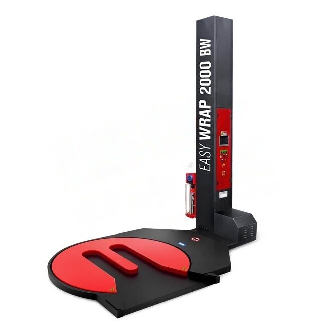 Półautomatyczna owijarka palet Easy Wrap 2000 BW to maszyna przeznaczona do owijania ładunków na paletach wyposażona w otwarty talerz obrotowy w kształcie litery E dzięki czemu wyeliminowana jest potrzeba używania rampy najazdowej oraz jest zmniejszona powierzchnia zajmowana przez maszynę. Ten model owijarki do palet wyposażony jest w system pre stretch 250% z możliwością zmiany rozciągu na 100%, 150% i 200% kolejną przydatną funkcją jest odcinanie folii po zakończonym procesie pakowania. Sterowanie poprzez dotykowy panel sterujący w języku Polskim, Angielskim i Włoskim.