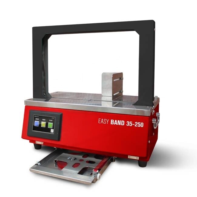 Easy Band 35-250, te banderolownice są proste i niezawodne, stanowią część gamy automatycznych maszyn banderolujących przeznaczonych do użytku nablatowego. Mogą pracować z taśmami papierowymi i polipropylenowymi o szerokości 12 mm. Ręczne lub automatyczne działanie za pomocą czujnika i ustawień regulowanych za pomocą kolorowego ekranu dotykowego umieszczonego z przodu maszyny. Maszyny posiadają uchwyt na rolkę taśmy umieszczony na spodzie maszyny. Znajdują zastosowanie zwłaszcza w grafice do pakowania różnorodnych produktów do ofert promocyjnych, w sklepach z owocami, perfumeriach itp.