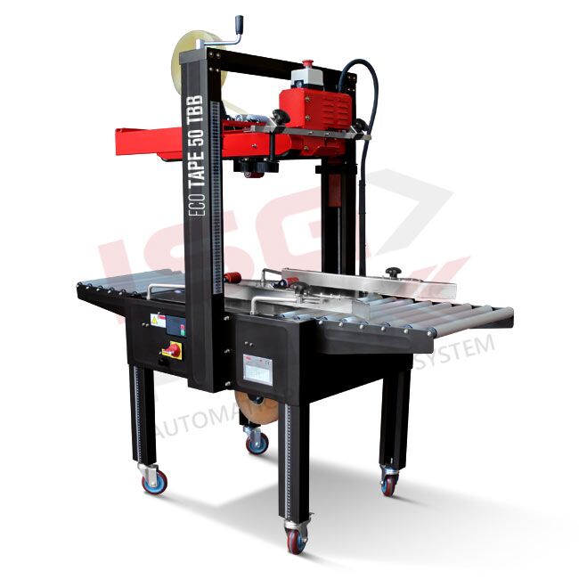 Półautomatyczna zaklejarka do kartonów klasy „Entry-Level” jest podstawowym modelem urządzeń do zaklejania. Maszyna do zaklejania kartonów taśmą Eco Tape 50 TBB może obsługiwać pudła do maksymalnej szerokości oraz wysokości 500mm.