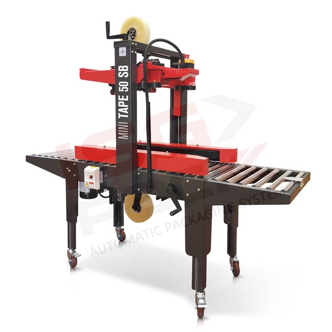 Maszyna do zaklejania kartonów taśmą Mini Tape 50 SB może obsługiwać pudła do maksymalnej szerokości do 300mm oraz wysokości 500mm. Minimalna wysokość kartonu 70mm. Minimalna szerokośc 95mm. Minimalna długość zaklejanego kartonu wynosi 200mm.