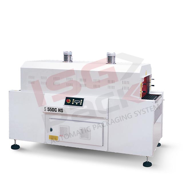 Model S 55 DC HS jest tunelem do obkurczania folii o wymiarach komory 240mm wysokości oraz 400mm szerokości. Ma maksymalną prędkość taśmy transportowej wynoszącą 37,6 m / min którą można regulować w zależności od wymagań i niezbędnego czasu jaki produkt musi spełnić w środku komory celem obkurczania. Tunel jest rozwiązaniem które można zintegrować z automatycznymi zgrzewarkami kątowymi ULTRA SEALER. Tunel współpracuje z wszystkimi foliami termokurczliwymi.